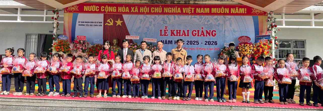 Sáng ngày 05/09/2025, trong không khí hân hoan của Ngày hội toàn dân đưa trẻ đến trường, trường Tiểu học Châu Sơn đã long trọng tổ chức Lễ khai giảng năm học 2025–2026. Buổi lễ diễn ra trong không gian ấm áp, rộn ràng, với sự tham dự của đại diện chính quyền địa phương, Ban Giám hiệu, cán bộ - giáo viên cùng toàn thể học sinh các khối lớp.